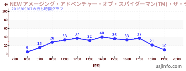 • NEW アメージング・アドベンチャー・オブ・スパイダーマン(TM)・ザ・ライド 4K3D$B$N(B2016年09月07日の待ち時間