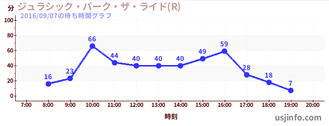 • ジュラシック・パーク・ザ・ライド(R)$B$N(B2016年09月07日の待ち時間