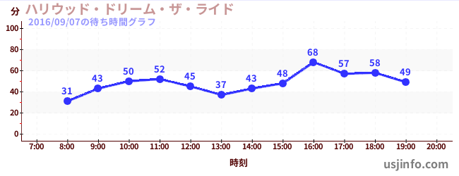 • ハリウッド・ドリーム・ザ・ライド〜バックドロップ〜$B$N(B2016年09月07日の待ち時間
