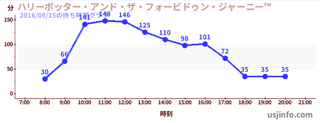 • ハリーポッター・アンド・ザ・フォービドゥン・ジャーニー™$B$N(B2016年09月15日の待ち時間