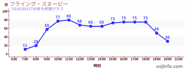 • フライング・スヌーピー$B$N(B2016年09月17日の待ち時間