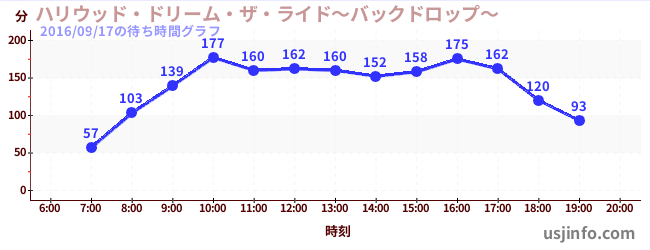 • ハリウッド・ドリーム・ザ・ライド〜バックドロップ〜$B$N(B2016年09月17日の待ち時間