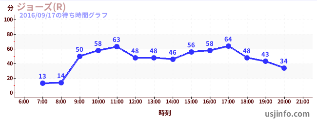 • ジョーズ(R)$B$N(B2016年09月17日の待ち時間