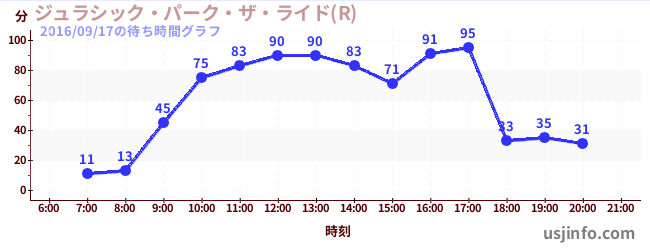 • ジュラシック・パーク・ザ・ライド(R)$B$N(B2016年09月17日の待ち時間