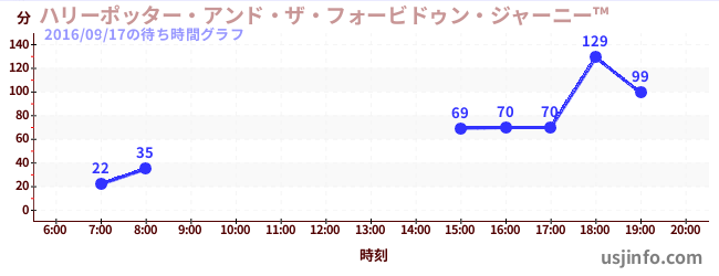 • ハリーポッター・アンド・ザ・フォービドゥン・ジャーニー™$B$N(B2016年09月17日の待ち時間