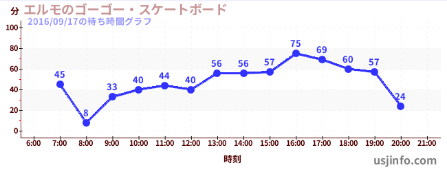 • エルモのゴーゴー・スケートボード$B$N(B2016年09月17日の待ち時間