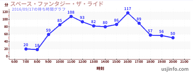 • スペース・ファンタジー・ザ・ライド$B$N(B2016年09月17日の待ち時間