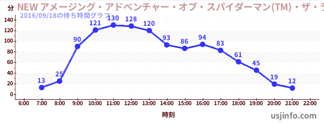• NEW アメージング・アドベンチャー・オブ・スパイダーマン(TM)・ザ・ライド 4K3D$B$N(B2016年09月18日の待ち時間