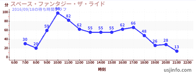 • スペース・ファンタジー・ザ・ライド$B$N(B2016年09月18日の待ち時間