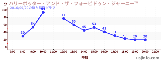 • ハリーポッター・アンド・ザ・フォービドゥン・ジャーニー™$B$N(B2016年09月20日の待ち時間