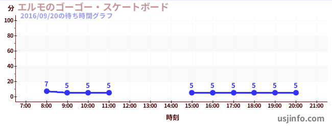 • エルモのゴーゴー・スケートボード$B$N(B2016年09月20日の待ち時間