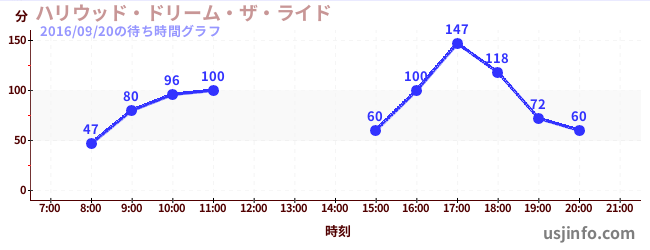 • ハリウッド・ドリーム・ザ・ライド$B$N(B2016年09月20日の待ち時間