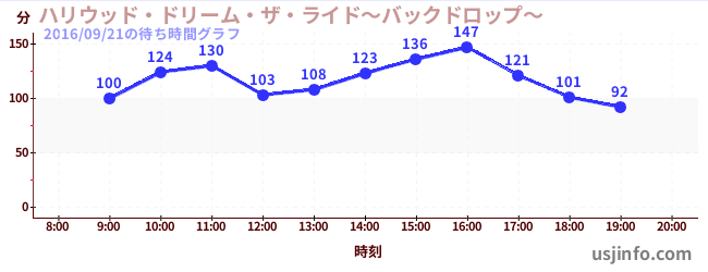 • ハリウッド・ドリーム・ザ・ライド〜バックドロップ〜$B$N(B2016年09月21日の待ち時間