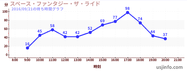• スペース・ファンタジー・ザ・ライド$B$N(B2016年09月21日の待ち時間