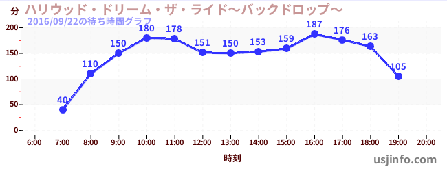 • ハリウッド・ドリーム・ザ・ライド〜バックドロップ〜$B$N(B2016年09月22日の待ち時間
