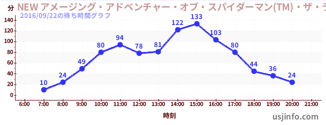 • NEW アメージング・アドベンチャー・オブ・スパイダーマン(TM)・ザ・ライド 4K3D$B$N(B2016年09月22日の待ち時間