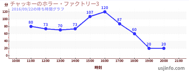 • チャッキーのホラー・ファクトリー3$B$N(B2016年09月22日の待ち時間