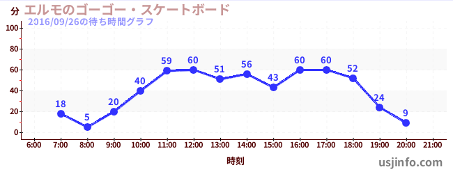 • エルモのゴーゴー・スケートボード$B$N(B2016年09月26日の待ち時間