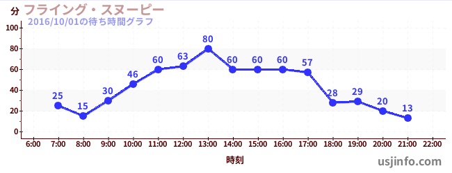 • フライング・スヌーピー$B$N(B2016年10月01日の待ち時間