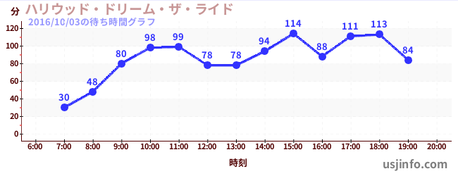 • ハリウッド・ドリーム・ザ・ライド$B$N(B2016年10月03日の待ち時間