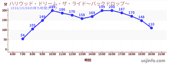 • ハリウッド・ドリーム・ザ・ライド〜バックドロップ〜$B$N(B2016年10月08日の待ち時間