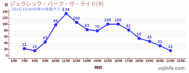 • ジュラシック・パーク・ザ・ライド(R)$B$N(B2016年10月08日の待ち時間