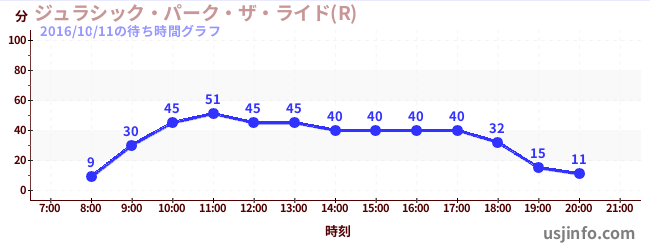 • ジュラシック・パーク・ザ・ライド(R)$B$N(B2016年10月11日の待ち時間