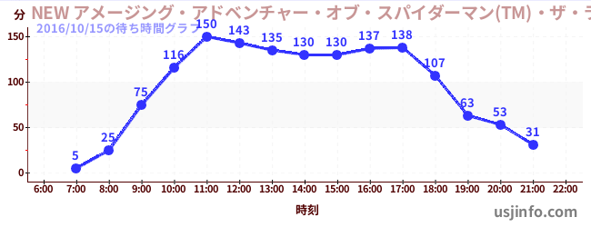 • NEW アメージング・アドベンチャー・オブ・スパイダーマン(TM)・ザ・ライド 4K3D$B$N(B2016年10月15日の待ち時間