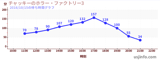 • チャッキーのホラー・ファクトリー3$B$N(B2016年10月15日の待ち時間