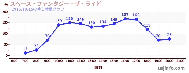• スペース・ファンタジー・ザ・ライド$B$N(B2016年10月15日の待ち時間