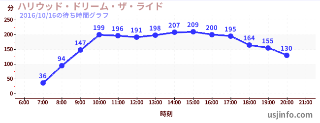 • ハリウッド・ドリーム・ザ・ライド〜バックドロップ〜$B$N(B2016年10月16日の待ち時間