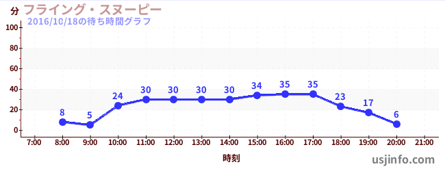 • フライング・スヌーピー$B$N(B2016年10月18日の待ち時間