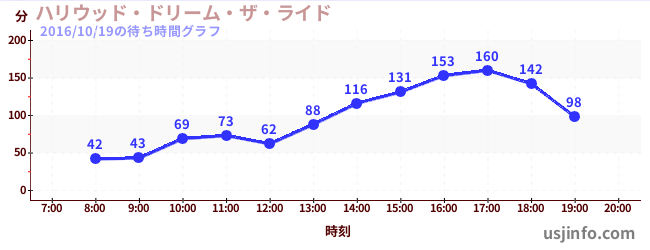 • ハリウッド・ドリーム・ザ・ライド$B$N(B2016年10月19日の待ち時間