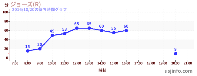 • ジョーズ(R)$B$N(B2016年10月20日の待ち時間