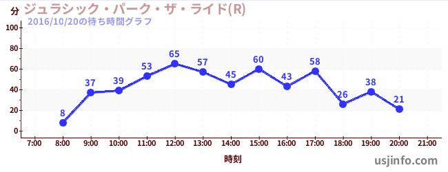 • ジュラシック・パーク・ザ・ライド(R)$B$N(B2016年10月20日の待ち時間