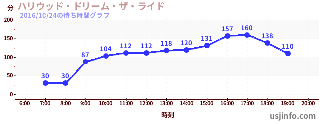 • ハリウッド・ドリーム・ザ・ライド〜バックドロップ〜$B$N(B2016年10月24日の待ち時間