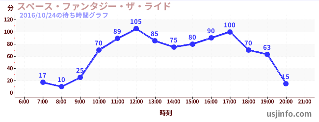 • スペース・ファンタジー・ザ・ライド$B$N(B2016年10月24日の待ち時間
