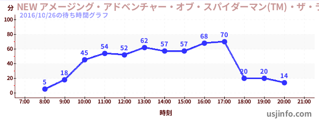 • NEW アメージング・アドベンチャー・オブ・スパイダーマン(TM)・ザ・ライド 4K3D$B$N(B2016年10月26日の待ち時間