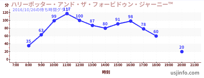 • ハリーポッター・アンド・ザ・フォービドゥン・ジャーニー™$B$N(B2016年10月26日の待ち時間