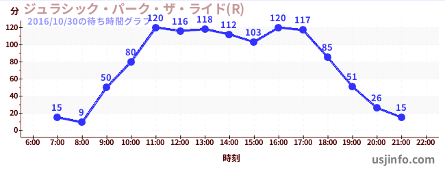 • ジュラシック・パーク・ザ・ライド(R)$B$N(B2016年10月30日の待ち時間