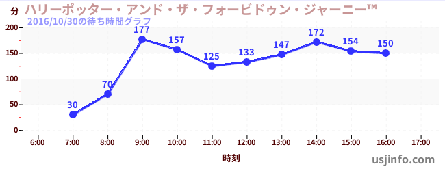 • ハリーポッター・アンド・ザ・フォービドゥン・ジャーニー™$B$N(B2016年10月30日の待ち時間