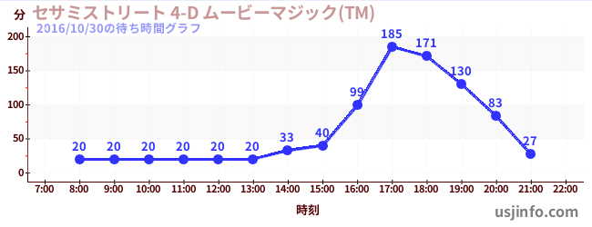 • セサミストリート 4-D ムービーマジック(TM)$B$N(B2016年10月30日の待ち時間