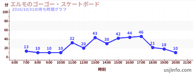 • エルモのゴーゴー・スケートボード$B$N(B2016年10月31日の待ち時間
