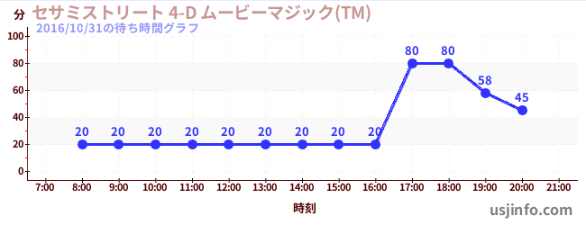 • セサミストリート 4-D ムービーマジック(TM)$B$N(B2016年10月31日の待ち時間