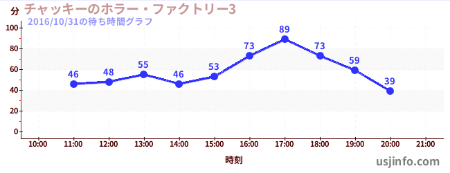 • チャッキーのホラー・ファクトリー3$B$N(B2016年10月31日の待ち時間