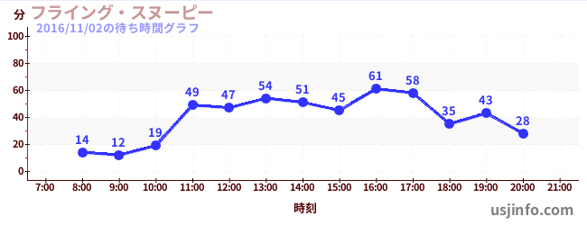 • フライング・スヌーピー$B$N(B2016年11月02日の待ち時間