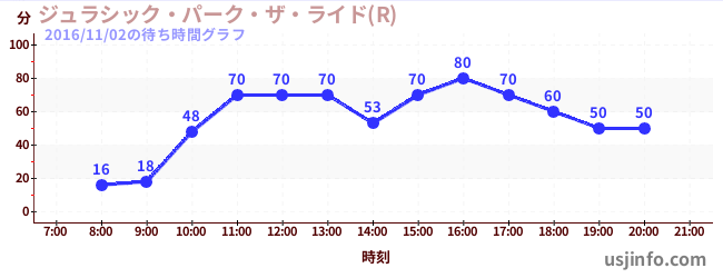 • ジュラシック・パーク・ザ・ライド(R)$B$N(B2016年11月02日の待ち時間