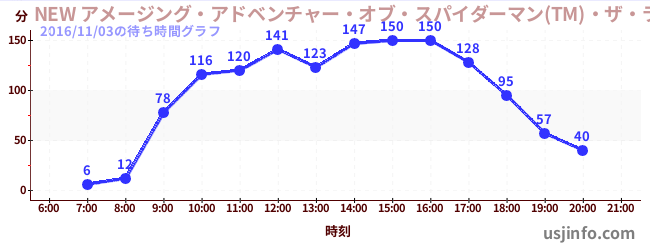• NEW アメージング・アドベンチャー・オブ・スパイダーマン(TM)・ザ・ライド 4K3D$B$N(B2016年11月03日の待ち時間