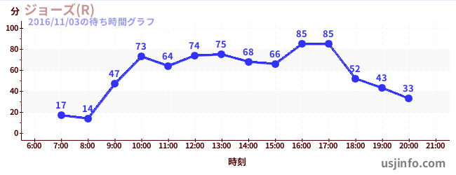 • ジョーズ(R)$B$N(B2016年11月03日の待ち時間