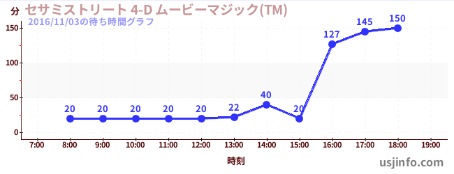 • セサミストリート 4-D ムービーマジック(TM)$B$N(B2016年11月03日の待ち時間